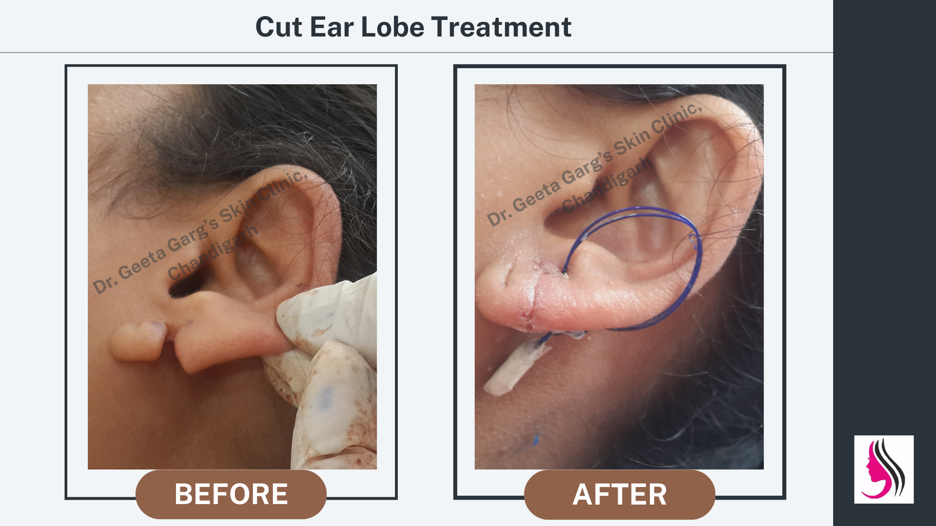 Torn, split, or stretched earlobes are a common concern—often caused by heavy earrings, trauma, or accidental pulls. At Dr. Geeta Garg’s Skin Clinic, Chandigarh, we offer safe and effective ear lobe repair (ear lobe stitching) procedures to restore the natural shape of your ear.